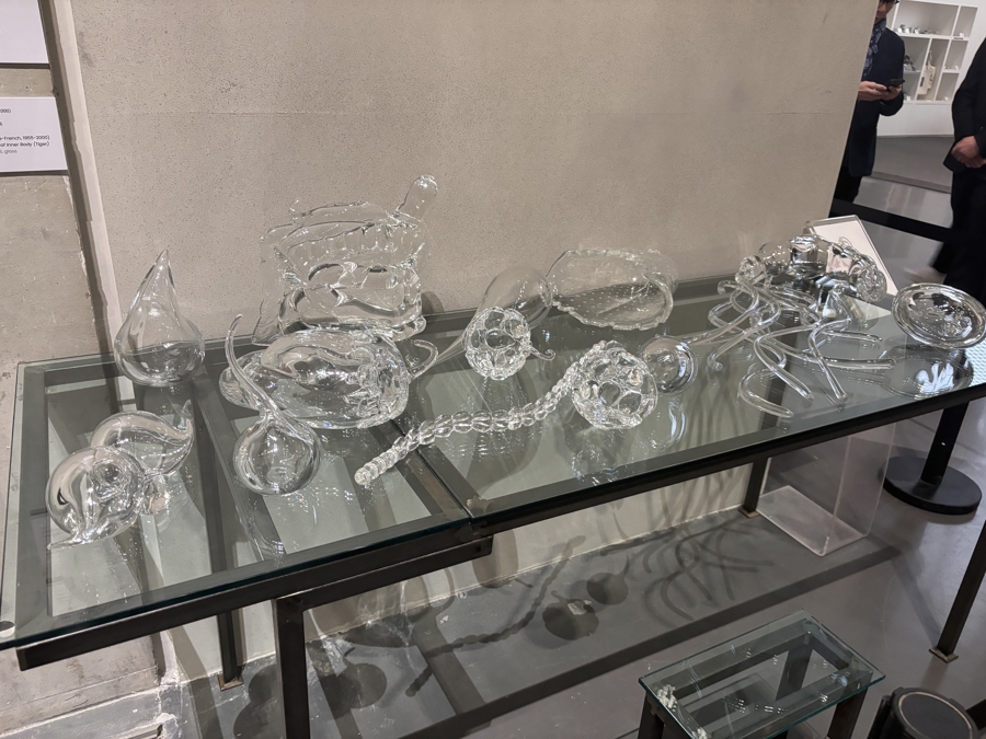 龙美术馆馆长王薇在导览中特别提及已故艺术家陈箴重病期间创作的作品《水晶体内景观(虎)》。这件作品由十二件人体器官的临床造型组成,十二件器官也代表着十二生肖。王薇分享,艺术家在生命末期,渴望身体能如水晶般纯净明澈。这件作品不仅是他艺术生涯的重要代表,也引发观众对于生命与健康的深刻共鸣。