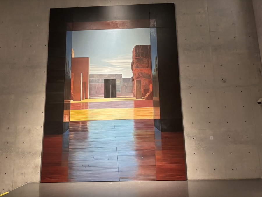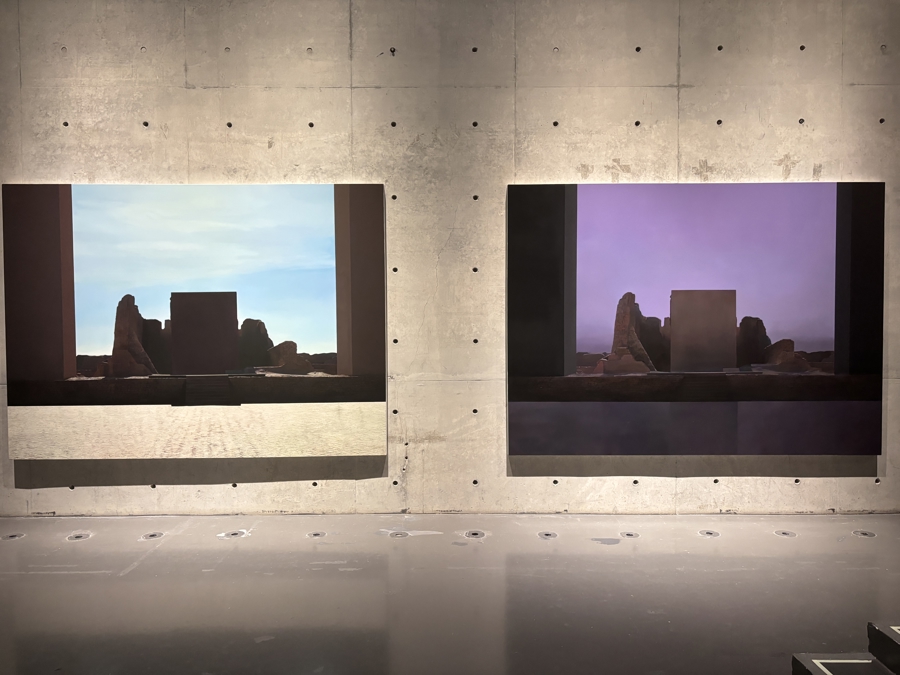 十年间,杨伯都的创作从描绘写实而丰富的展厅内部,逐渐转向对“空旷”本身的表达。她画中的空间被极致压缩,最终成为一条发光的直线——那便是窄门。她也从对建筑内部的关注,转向对外部“风景”的观看。古老的岩石、洞穴与峡湾在她的画布上铺陈,将观者引向一个更为辽远的时空。