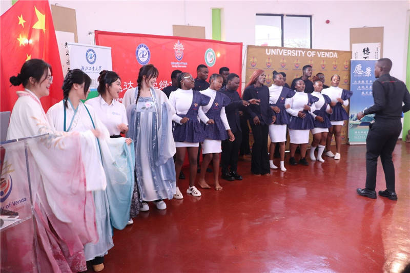 “优秀中华传统文化学生使团”参与歌舞汇演。南非文达大学绿色科技孔子学院供图