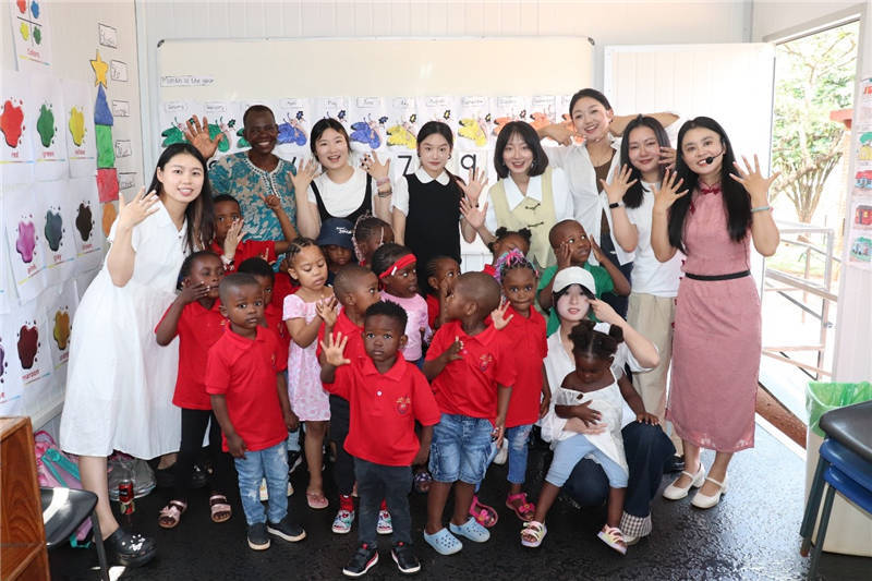 “优秀中华传统文化学生使团”在儿童中文课堂教学。南非文达大学绿色科技孔子学院供图
