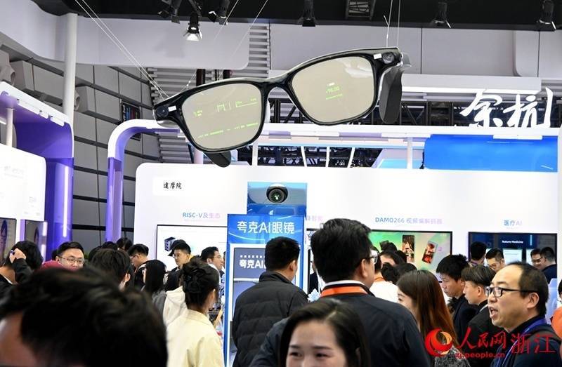 夸克AI眼镜展台,聚满了想体验的参观者。人民网记者 张丽玮摄